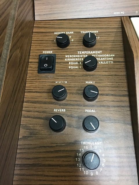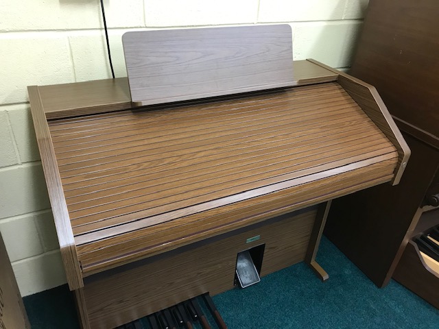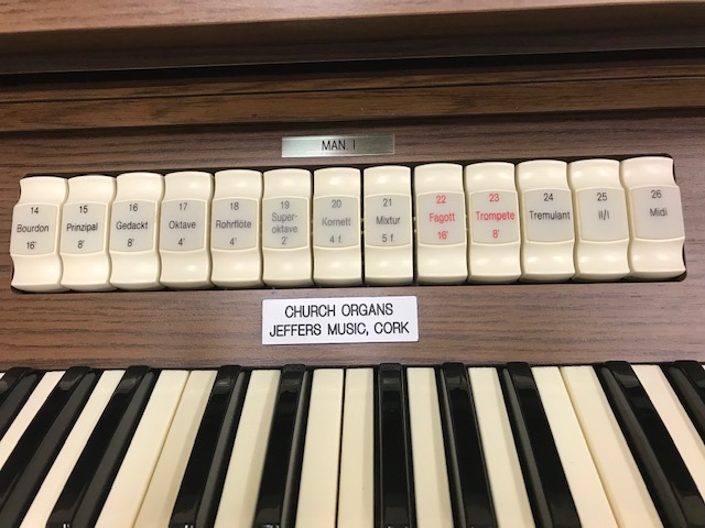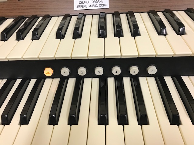 Used Viscount Jubilate 35 two manual digital church organ with a 13 note pedalboard. Features include 28 voices on lighted tab stops, transpose, adjustable reverb, 6 x thumb registration pistons with 6 memory banks, 3 couplers, auto pedal, romantic or baroque setting, MIDI, headphone socket, foot general expression pedal, tremulant tabs with speed control, locking roll top cover, built in amplifiers and speakers, and much more. This organ is in good working order and is a tidy size for a small church or for a convent chapel.
